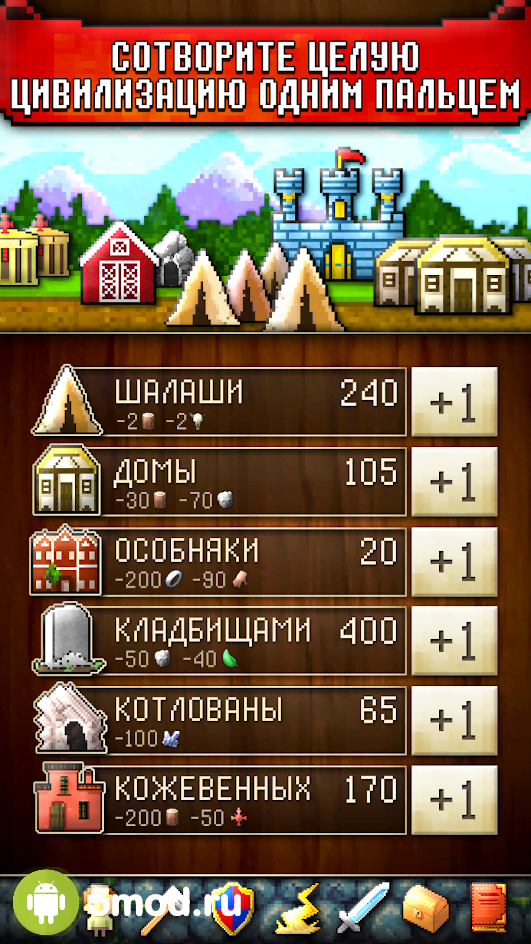 CivCrafter - "симулятор тапа" в котором геймеры простым нажатием на экран будут взращивать и формировать средневековую цивилизацию. Начать предстоит с банальной добычи ресурсов, которые пойдут на строительство зданий инфраструктуры первоочередной степени важности, найм юнитов, прокачку навыков и так далее. Ну а с течением времени придётся вкладываться и во многие другие аспекты существования целого народа со всеми его особенностями и проблемами. Так же не стоит думать, что никто из соседей не попытается прийти "в гости" с огнём и мечом. Стоит быть готовым к любым неожиданностям.
