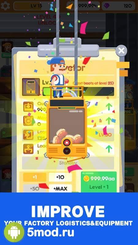 Idle Burger Factory - Tycoon Empire Game - простая в управлении стратегия в которой игроки станут руководителями фабрики по производству бургеров. Им предлагается классическая уровневая система, а так же поэтапное развитие каждого элемента, что участвует в процессе. От конвейерной ленты, до того кто собирает все ингредиенты вместе. При этом нужно много времени уделять логистике и автоматизации процессов. Задержки негативно скажутся на потоке денег в бюджет предназначенный для роста и модернизации. Так же следует работать и с клиентами. Учитывать их пожелания и претензии, чтобы в итоге бутер становился всё вкуснее и питательнее.