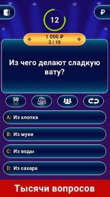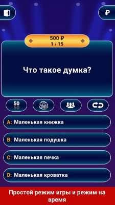 Игрокам на выбор предлагается два основных режима: классическая быстрая игра, где нужно правильно ответить на все вопросы и заработать миллион, и ежедневное испытание с порцией интригующих вопросов на разные темы.