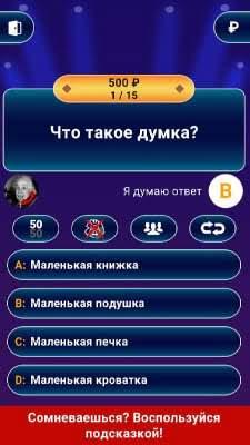 Миллионер 2020 - интеллектуальная викторина – любимая всеми игра с интересными и порой действительно сложными вопросами. Простой интерфейс, несколько тем на выбор, большая база вопросов и несколько режимов игры.