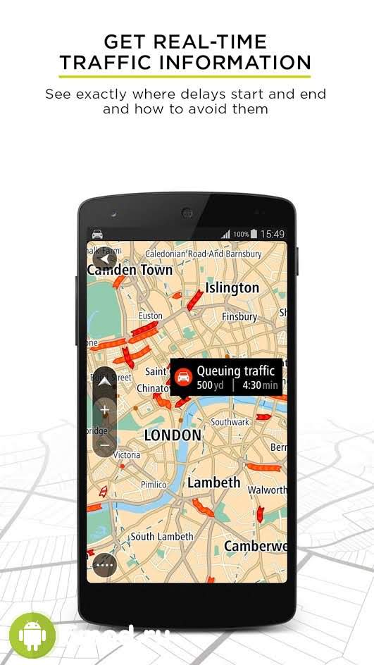 Tomtom Go Navigation and Traffic - полезный проект для автовладельцев в более чем 150 странах по всему миру. Он уже заработал огромную армию фанатов за счёт своих качеств и свойств, что облегчают жизнь за рулём. Навигация с интеллектуальным выбором пути в котором учитываются пробки, заторы, происшествия, стройки и всё прочее, что может задержать, сетка дорожных камер, что поможет избежать штрафов и последующих проблем, автономный режим, указания на правильную полосу движения, прогнозы на ближайшее время и многое другое сделало данную программу одним из самых популярных выборов среди водителей.