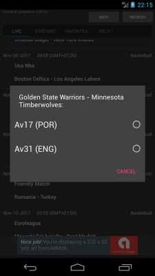 Sport TV - данная программа предлагает пользователям нечто, что можно назвать телепрограммой. Списки приближающихся спортивных соревнований, встреч, чемпионатов и так далее будут обновляться со временем, а так же предоставляться указания того где и во сколько можно будет насладиться наблюдением за мероприятием. При этом предлагается сразу несколько вариантов телеканалов или площадок что будут вести трансляцию или демонстрировать запись. Это придаёт определённую свободу выбора, а так же учитывая настройки и прочие возможности делает данное приложение весьма полезным для фанатов спорта.
