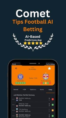 Comet AI Football Betting Tips - ещё один проект в котором задействовали возможности искусственного интеллекта для анализа и расчёта вероятного итога футбольной встречи. Так же продукт понравится ещё и симпатичным интерфейсом. Наглядно демонстрирующим результаты и варианты предстоящих событий. Расчёт идёт по десяткам критериев, что позволяет приходить к точным прогнозам. Конечно же всё учесть просто невозможно, но поклонники ставок и прочего будут весьма довольны уровнем проработки виртуального помощника и источника информации делающей действия более осмысленными и просчитанными.
