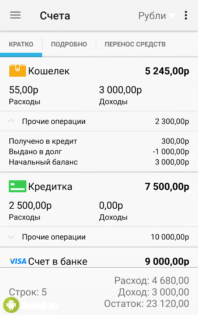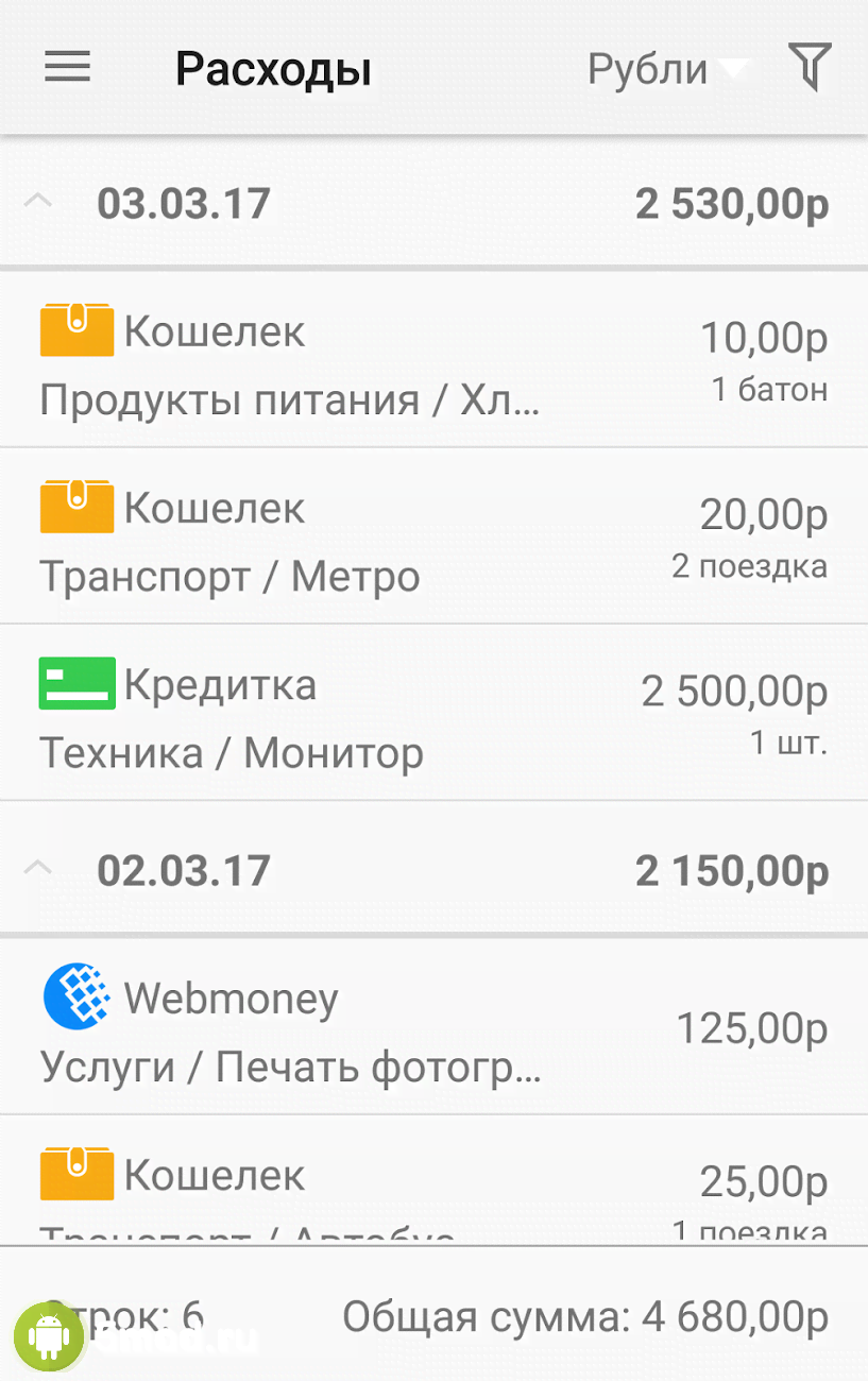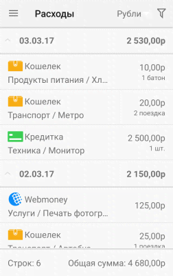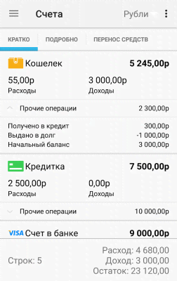 Домашняя бухгалтерия: учет расходов и доходов - универсальное и весьма функциональное приложение, что помогает подчинить себе свой кошелёк и все расходы. Из-за которых деньги утекают, как вода. И при этом зачастую совершенно незаметно для владельца. Программа подходит и под уровень одного человека и семьи и более сложных ситуаций с инвестированием и ценными вложениями. Наглядное и понятное оформление прихода и расхода, источников и путей перемещения, создание копилки для покупки чего-то впечатляющего, цифровая документация, синхронизация, резервное копирование, установка пароля и многое другое понравится всем кто заинтересован в подобном.