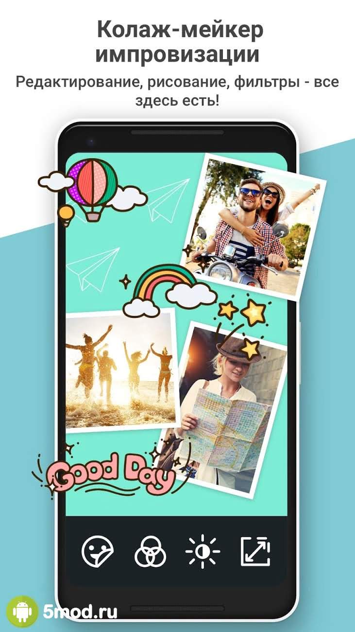 PhotoGrid: Video & Pic Collage Maker, Photo Editor - известный и очень популярный фоторедактор предназначенный в первую очередь для всех людей ведущих крайне активную жизнь в социальных сетях. Программа помогает быстро и продуктивно создавать фото- и видеоколлажи, накладывать на них эффекты, фильтры, различные элементы и многое другое, что придаст оригинальности и необычности готовому продукту. А функциональный механизм дополненной реальности предоставляет уникальную возможность получить селфи или записать видеофайл с собой любимым прошедшим серьёзное "улучшение" с помощью качественных и анимированных стикеров.