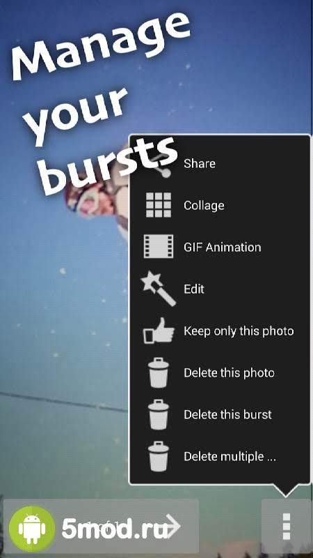 Fast Burst Camera - проект для поклонников использовать мобильные гаджеты для создания фотографий. В особенности для сталкивающихся с необходимостью снимать динамичные сцены, подвижных детей, спортивные мероприятия и все прочие ситуации, когда события протекают с большой скорость. Данное приложение позволяет не только совершать все привычные манипуляции с настройками и прочими действиями, но и включать режим серийной съёмки. В зависимости от характеристик устройства они смогут выдавать до 30 кадров в секунду. Что обеспечивает гарантированное нахождение того изображения, что идеально отобразит то, что происходило в кадре.