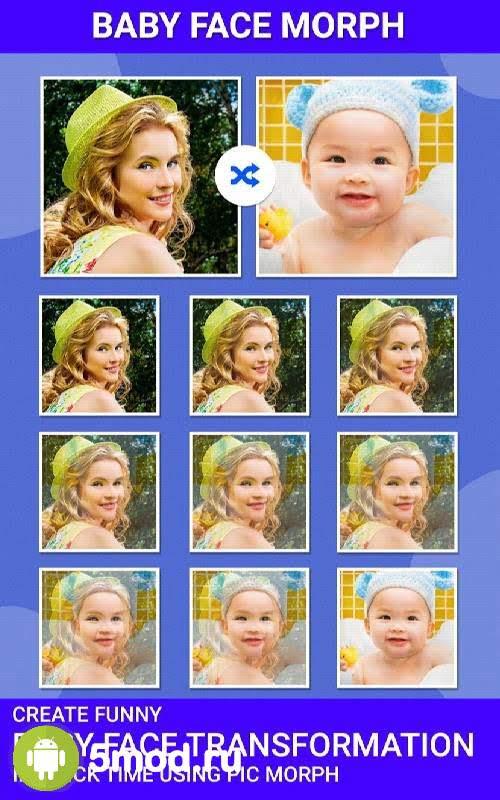 Pic Morph - Morph Faces - ещё одно приложение для получения удобоваримого результата по морфингу лиц. То есть, превращения одного портретного изображения в другое. Зачастую радикально отличающегося от исходной картинки. В данном случае порадуют не только автоматические действия и уже готовые пресеты, но и возможность собственноручно отрегулировать те или иные значения. Для достижения более гармоничного процесса. Который можно вывести и в виде видео и в виде GIF-изображения. Что довольно удобно. При работе с различными социальными сетями, профессиональными редакторами и прочими подобными площадками.