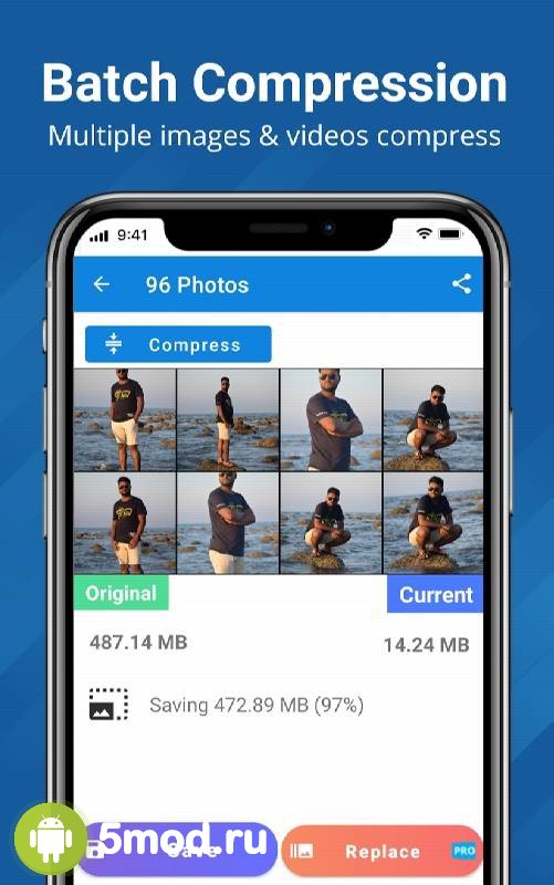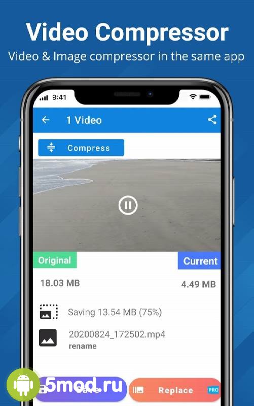 Video & Image compressor - reduce size & compress - весьма полезное приложение для любого активного пользователя мобильных гаджетов в сфере записи видеофайлов, создания многочисленных фотографий, хранения обоев и всего прочего, что в принципе очень нужно и важно, но при этом это всё занимает просто огромное количество ценного места на внутреннем пространстве. С помощью программы можно будет без особой потери качества сжать файлы и тем самым освободить директории для поступления новых материалов. Удобное и простое управление, высокая скорость работы и многое другое понравится заинтересованным в подобном.