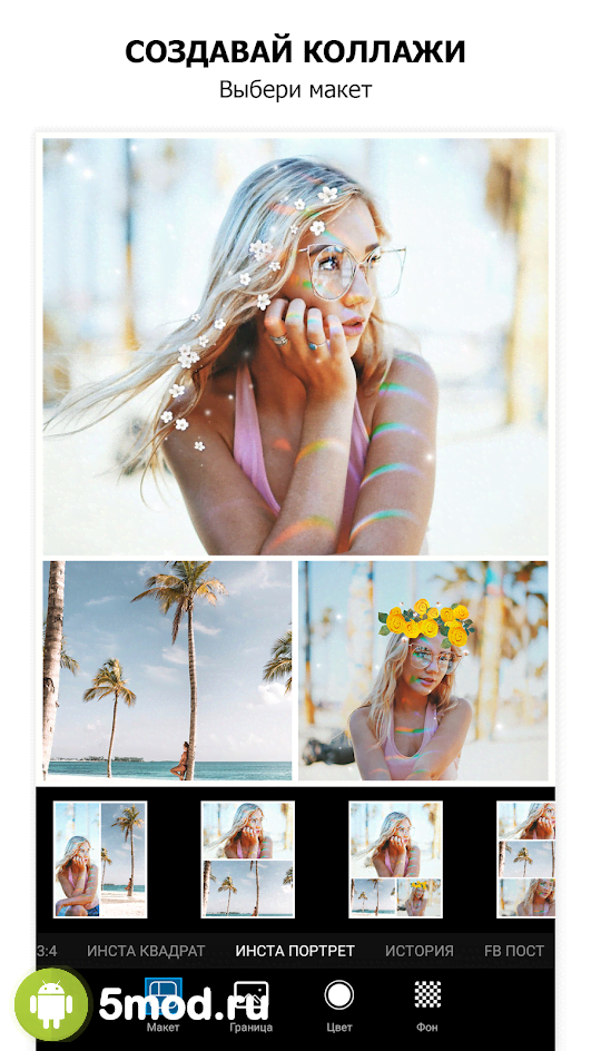 Не обошлось без излюбленной многими пользователями функции съемки с интервалом, серийной съемки, создание коллажей и необычных живых обоев с анимированными объектами. Если у вас есть чуть больше пяти минут на обработку, то данный редактор станет отличным выбором даже для новичков.