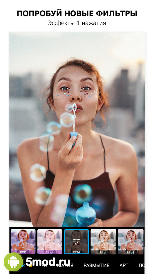 Утилита позволяет не просто применять наборы готовых фильтров, но и более детально подходить к их обработке, создавая коллажи, прикрепляя рамки и делая цветокоррекцию. В программе вы найдете более 15 эффектов, которые обновляются и докачиваются совершенно бесплатно, но некоторые из них можно приобрести только за деньги, правда, делать это вовсе необязательно. Стандартного набора хватает более чем.