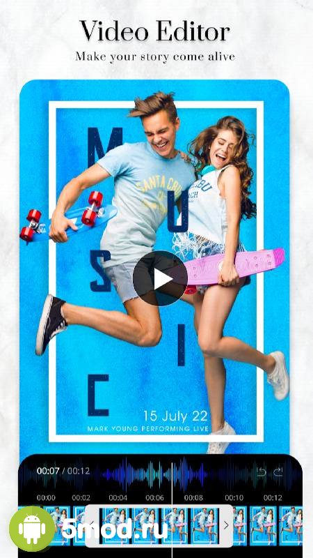 Story Maker: Reels Short Video - приложение, что не оставит равнодушным ни одного фаната самостоятельного создания только максимально красивых и стильных историй для различных социальных сетей. В этом проекте есть всё необходимое для успешной реализации поставленных перед собой планов. А так же масса уже готовых шаблонов. Что ускорит процесс, избавит от поиска вдохновения и так далее. Полноценный инструментарий соседствует с коллекцией фильтров, эффектов и всего прочего, что даст существенно преобразить изначальный вариант после черного монтажа. Так что ничего странного, что проект приобрёл весьма впечатляющую популярность.