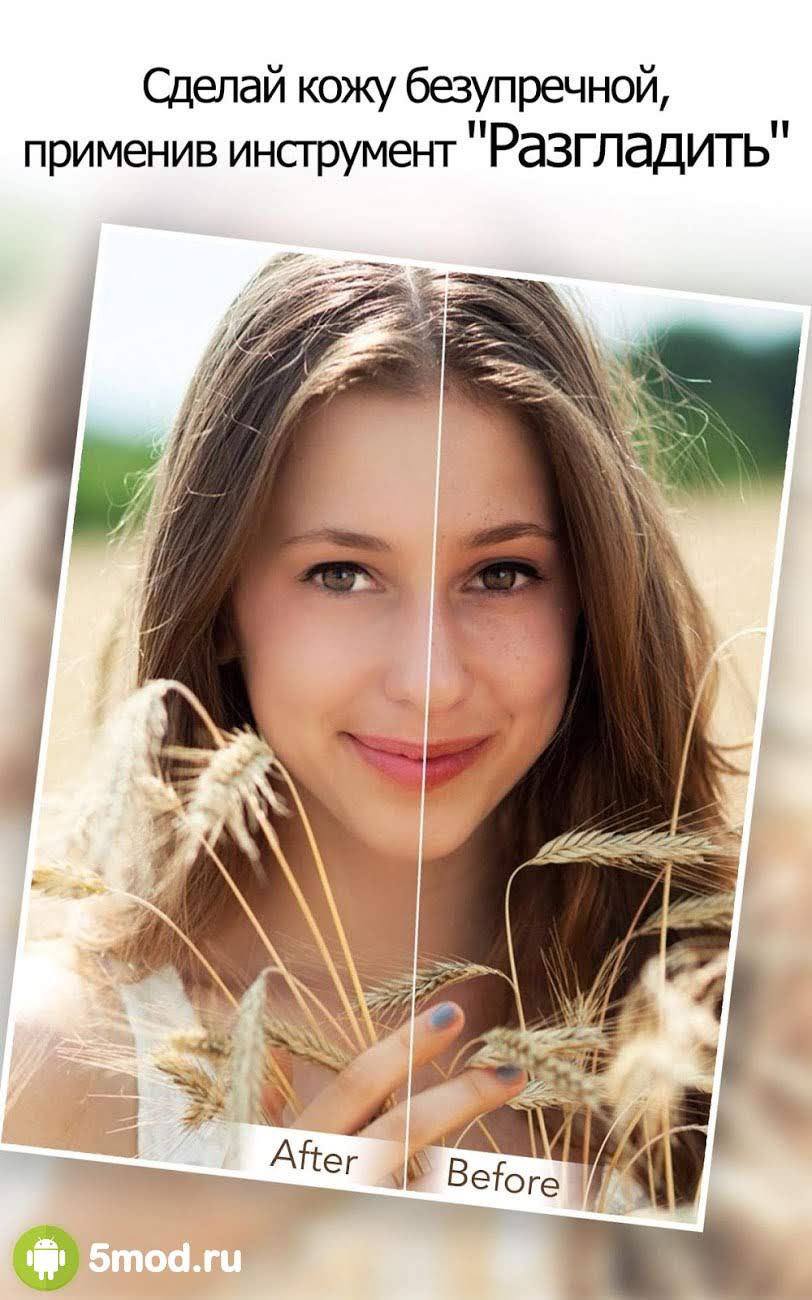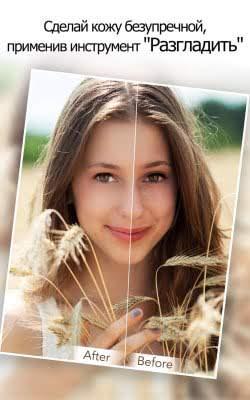 В наборе программы имеется множество полезных функций, каждую из которых можно использовать без определенных знаний и опыта в редактировании фотографий. К примеру, можно легко убрать все неровности на лице, подкорректировать форму глаз, губ, уменьшить щеки, добавив скул и многое другое. По окончанию редактирования, можно применить один из нескольких десятков фильтров, добавить эффектов и поделиться полученным результатом с друзьями в социальных сетях.