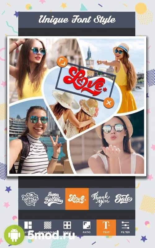 Auto Collage Photo Grid Maker,Pics Frame Editor - приложение для всех кто хочет получить коллаж, стильный и оригинальный, но при этом не хочет тратить много времени на это. А так же на то, чтобы разобраться с какой-либо программой, что предоставляет подобную возможность. Проект обеспечивает целым списком возможных автоматических процессов, что помогают существенно экономить время и создавать именно то, что будет отвечать требованиям заказчика. Разнообразие рамок, фильтров, эффектов в купе с простейшим управлением и использованием разнообразных инструментов понравится всем без исключения заинтересованным личностям.