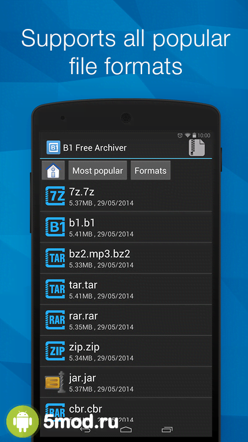 B1 Archiver zip rar unzip - универсальный набор инструментов для полноценной работы с различными архивными файлами. В этом списке не только знакомые всем, но и крайне специфичные, специализированные и просто редкие. Для людей работающих с ними практически каждый день данная программа станет действительно очень полезной, экономящей время и банально нервы. Ну а функционал построенный так, что человек получает очень удобное управление, навигацию, извлечение и всё прочее делает B1 Archiver zip rar unzip настоящим подарком для любого владельца мобильного устройства.