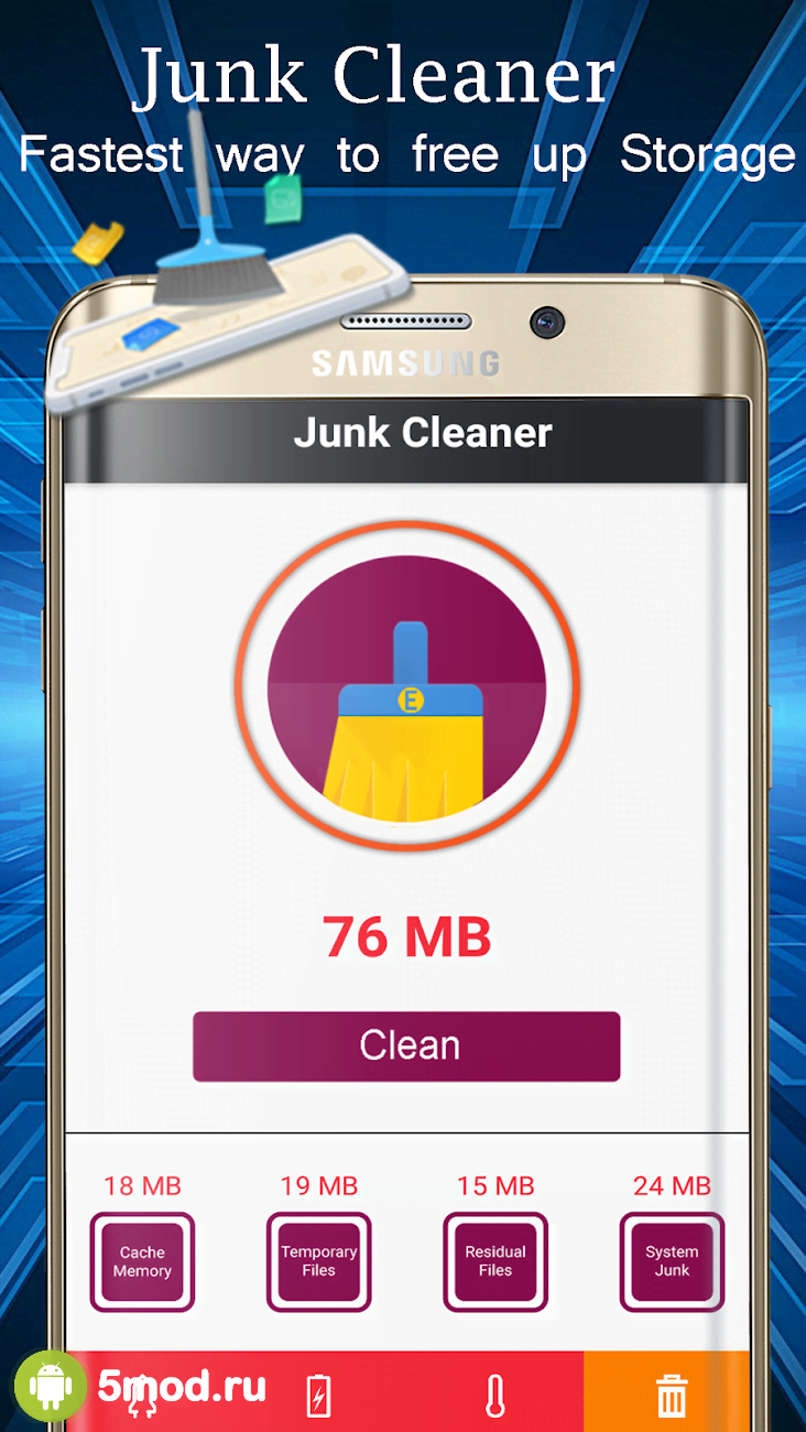 Ezi Clean Master & Battery Saver - ещё одно приложение-инструмент для очистки внутреннего пространства мобильного гаджета от ненужного мусора. Регулярные подобные действия не только освободят место, увеличат скорость работы, но и существенно сэкономят заряд батареи (из-за закрытия различных висящих в фоне процессов), а так же повысят общую продолжительность "жизни" гаджета. Оперативность и так же простота порадует всех кто не хочет утруждать себя лишними подробностями. Для них приготовили всего одну кнопку и с её помощью они получат все требуемые результаты.