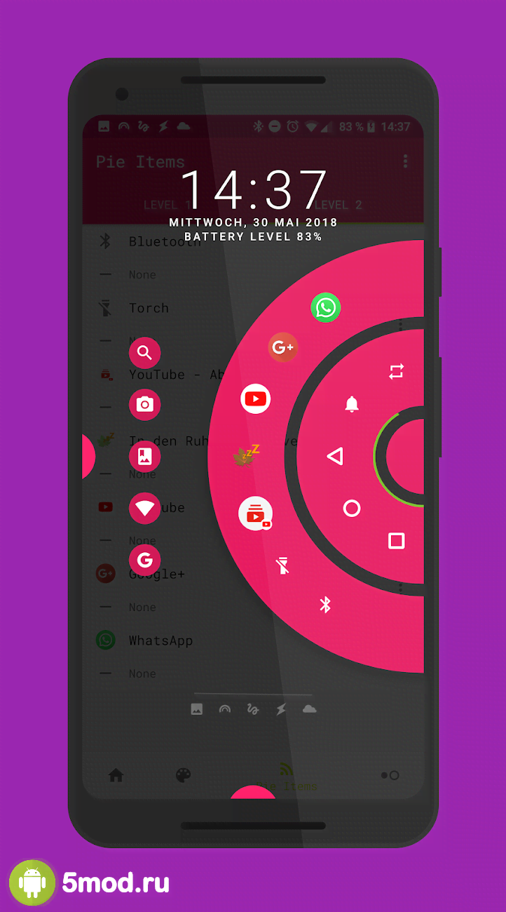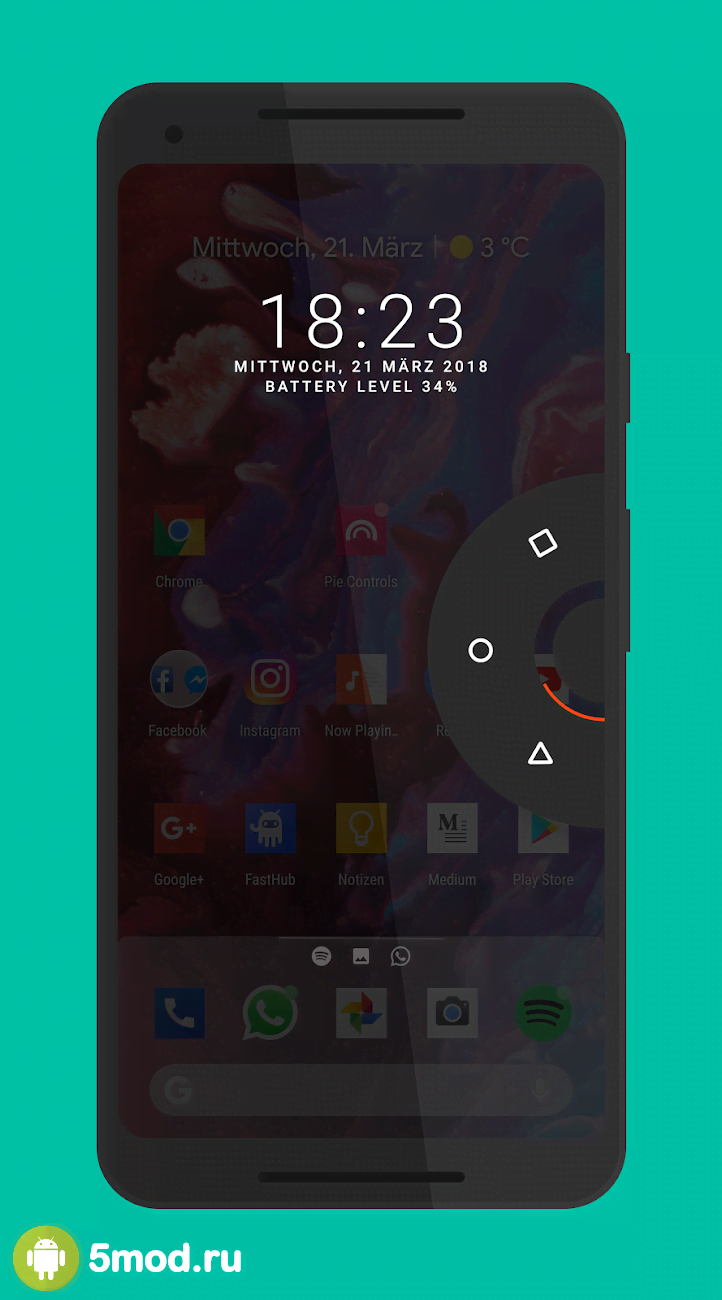 Pie Controls — Swipe Gesture Navigation - приложение тире инструмент, что так же можно отнести к проектам по персонализиции. Программа позволяющая использовать особое меню "всплывающее" из-за одного из краёв экрана на выбор. Круговые плашки предоставляют простейший доступ к выбранным иконкам, функциями и прочим возможностям мобильного гаджета. Их положение и месторасположение полностью настраивается под требования и запросы. Подобная механика помогает очень существенно экономить время при работе с устройством. Стильно, оперативно и результативно.