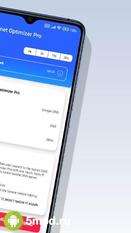 DNS changer PRO: Net Optimizer - приложение для пользователей мобильных гаджетов, что страдают от "странного" поведения их соединения. Проект позволит и провести тестирование того, что есть сейчас и в последующем реализовать оптимизацию. Тем самым выбрав оптимальный вариант DNS-сервера и так далее. В итоге заметив существенное улучшение показателей и комфортности взаимодействия. Можно всё делать в ручном режиме или же отдаться на волю автоматических манипуляций. В любом случае результат будет достигнут. Всем желающим изменить ситуацию и сделать всё более продуктивным обязательно стоит обратить внимание на этот продукт.