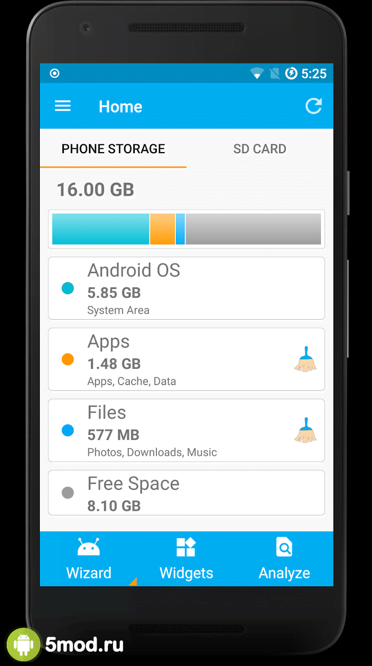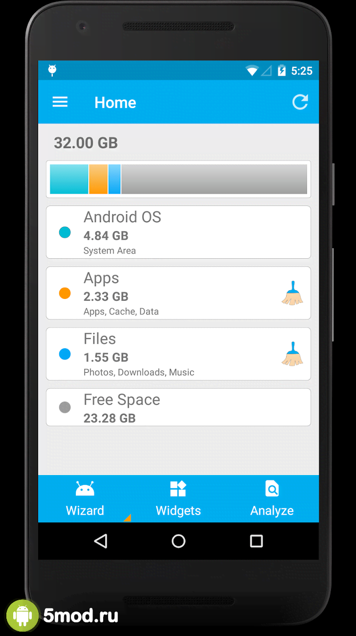 Storage Space - инструмент функционал которого обеспечит пользователей всем необходимым для максимально точного понимания ситуации со свободным местом на своём мобильном устройстве. Сколько занято, сколько свободно, на внутреннем пространстве или SD-карте. Так же программа анализирует тип файлов и демонстрирует сколько занято музыкой, видео, документами и так далее. Ну а симпатичный виджет на главном экране обеспечит наглядным подтверждением ситуации, что обновляется в реальном времени. Стильно, удобно и понятно - Storage Space придётся по душе всем заинтересованным.