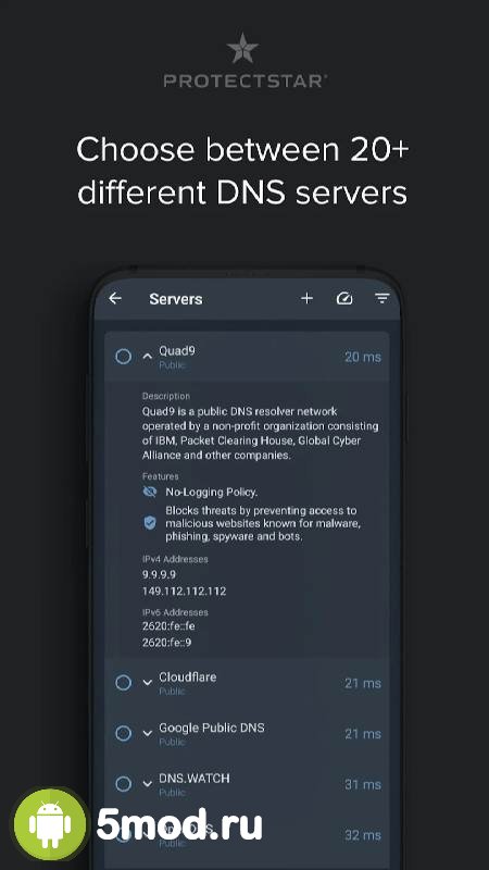 DNS Changer Fast&Secure Surf - приложение от известного разработчика инструментов. Удобных, функциональных и полезных для пользователей. В данном случае программа предлагает автоматическое переключение на более безопасный, быстрый DNS-сервер, что позволяет получать максимальные качества и свойства необходимые для беспроблемного перемещения по пространству интернета, получения высокой скорости и так далее. Интуитивное управление и высокая степень автоматизации делает программу привлекательной для людей самого разного уровня опыта и знаний в этой сфере настройки работы мобильного гаджета.