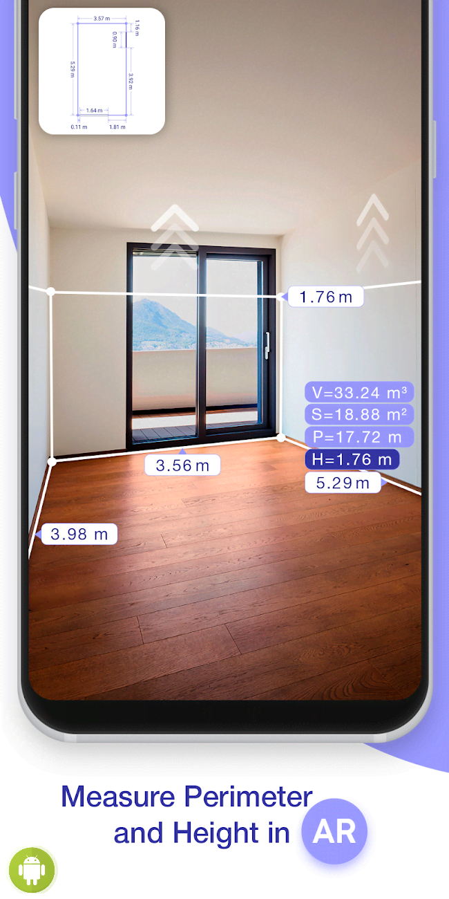 AR Plan 3D Ruler – Camera to Plan, Floorplanner - отличный, крайне удобный и функциональный проект, что понравится тем кто занимается ремонтом, оценкой помещений, дизайнерам и прочим профессионалам, а так же обычным людям желающих получить точное представление о характеристиках того или иного жилища. В работе приложения используется элементы дополненной реальности, что позволяет не отрываясь экрана гаджета выполнять поставленные задачи. Высчитывание длинны стены, периметра, объём комнаты, площадь окон, дверных проёмов и всё прочее происходит быстро, удобно и с точными результатами.