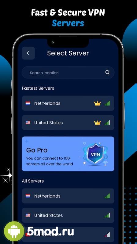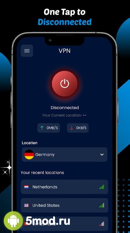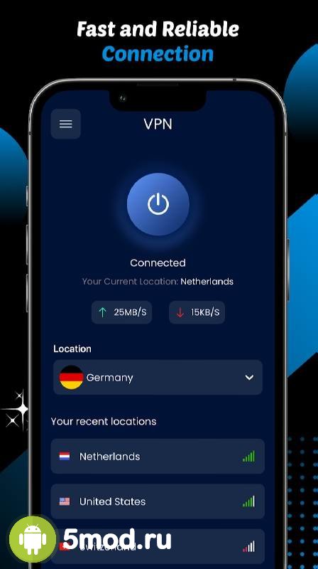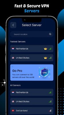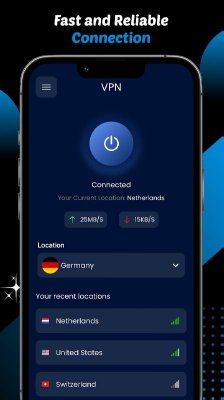 Blue VPN - VPN Proxy Master - максимально простой в управлении и выборе сервера продукт, что предназначен для тех, кто не хочет тратить и минуты лишнего времени на понимание и выставление параметров. Им достаточно нажать одну кнопку для того, чтобы процесс пошёл. Автоматический выбор предпочтительного адреса выхода, высокая скорость работы, быстрое переключение между источниками в случае необходимости, высокий уровень безопасности и многие другие аспекты делают представленную программу оптимальным решением для получения свободного доступа к запрашиваемым ресурсам на просторах интернета.