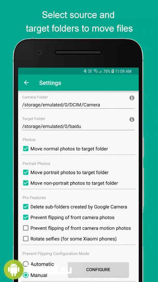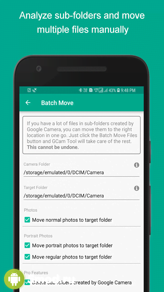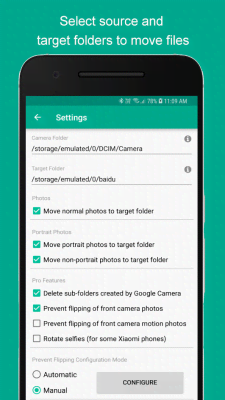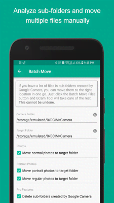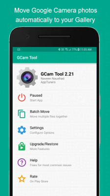 GCam Tool - приложение тире инструмент, что сделает жизнь фотографов использующих камеры мобильного устройства на порядок удобнее и сэкономит время из-за того, что избавит их от массы раздражающе однообразных действий при работе с получившимися фотографиями. Можно выбрать папку куда сразу же будут отправляться изображения. Причём можно разделит их для фронтальной и основной. Достаточно потратить немного времени для определения вариантов для различных действий и после можно не задумываться о том, что потом придётся наводить порядок в общей папке сортируя и методично перенося в нужные директории.
