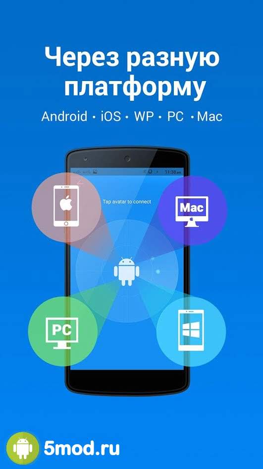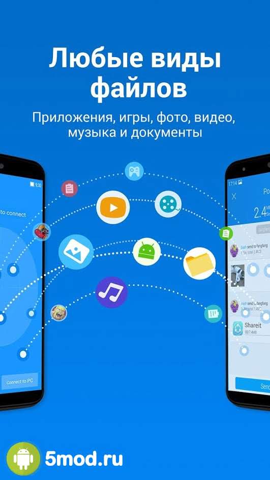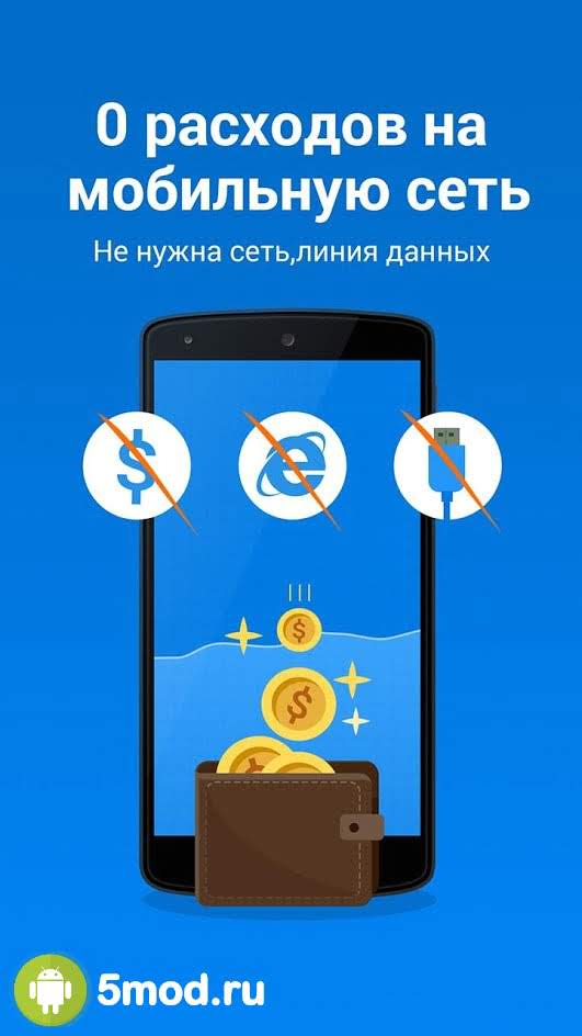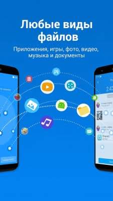 Моментальная передача данных любых объемов обеспечивается за счет быстрого соединения, создаваемого между двумя устройствами. Всё, что вам требуется — это выполнить соединение по Wi-Fi сети, подключиться ко второму смартфону/планшету и выбрать файлы для передачи.
