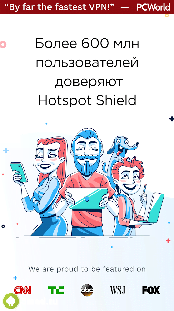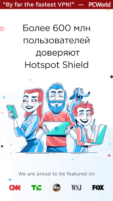 Hotspot Shield Free VPN Proxy & Wi-Fi Security - один самых популярных и востребованных VPN, что существуют на этот момент. Огромное количество пользователей уже не могут представить свою деятельность в интернете без тех возможностей и качеств, что предоставляет проект. Он предлагает доступ к сайтам, что были заблокированы по тем или иным причинам в той или иной стране. А так же анонимность и конфиденциальность, высокую степень безопасности, защиту Wi-Fi соединения, отсутствие какой-либо регистрации и оставления своих данных и многое другое. Достаточно просто установить программу, чтобы избавиться от массы сложностей.