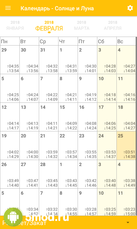 Скачать Calendar - Sun & Moon взлом бесплатно