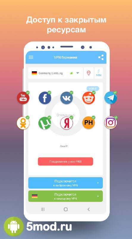 Скачать VPN Germany - быстрый VPN 1.115 Mod (Pro) взлом бесплатно