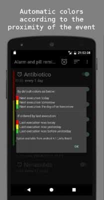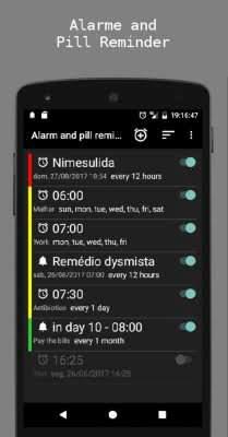 Alarm and pill reminder - минималистичного дизайна проект, что по сути и не должен выглядеть, как что-то праздничное и впечатляющее. Главное здесь - это то, как приложение справляется с тем для чего и было создано. Напоминания о том, что нужно, а зачастую и необходимо принимать таблетки. И совершать прочие действий направленные на поддержание нормальной работоспособности организма. Кроме будильников, сигналов и прочего, есть и цветовая система указания важности оповещения. Это позволяет в один взгляд понимать уровень и действовать соответствующе. Зелёное - можно подождать и не отвлекаться, красное - бросаем всё!