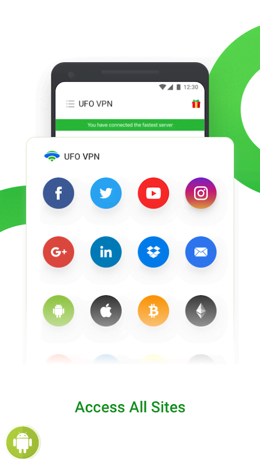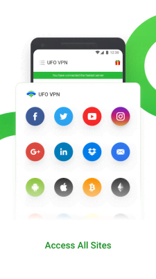 UFO VPN - незаменимое приложение для всех кому требуется интернет не ограниченный запретами или рамками. Оно предоставляет пользователям местоположение по всей Америке, Юго-Восточной Азии, Европе и Ближнему Востоку. Так что есть из чего выбрать и как избежать запретов тут или в другом месте. Полная анонимность, высокая скорость работы, безопасность конфиденциальных данных получаемых или отправляемых, возможность применения для онлайн-игр и многое другое порадует владельцев мобильных гаджетов. Ну а простота использования и выставления настроек не создаст проблем ни перед кем.