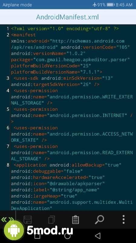 APK Parser - ещё один из инструментов, что предлагает пользователям полно и детально познакомиться с содержимом любого, выбранного ими, apk-файла. При этом в их возможностях не только просмотр различных качеств и свойств, но и работа с исходным кодом, получение данных заложенных в файлах и многое другое. Проект можно применять не только для собственного обучения и развития в более детальном понимании всей структуры написания и прочего, но и для полноценной работы. Что и делает программу популярным способом решения возникших задач и достижения поставленных перед собой долгосрочных целей.