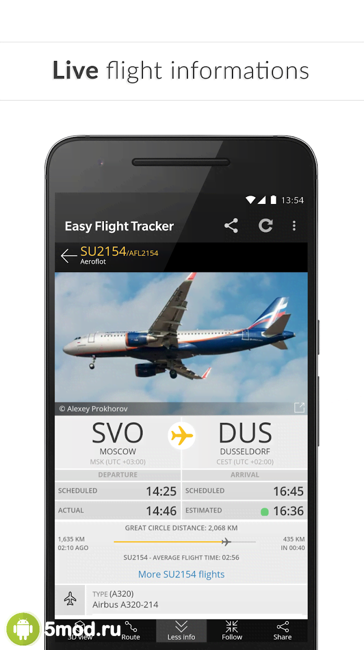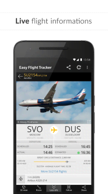 Easy Flight Tracker ✔️ Free Flight Radar - приложение для удовлетворения своего любопытства, получения необходимых знаний и просто для тех кто обожает всё, что связано с самолётами и воздушными перевозками. Перед нами лёгкий, понятный и в то же время весьма функциональный способ поступления информации о том или ином рейсе. Можно отслеживать перемещение родных и близких, узнавать о том, какой самолёт и куда летит в данный момент над вашей головой. Детальность и точность данных, работа в реальном времени, а так же понятное управление возможностями порадует всех кто заинтересован.