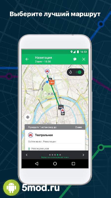 В программе отображается сразу несколько удачных вариантов движения, причем вы можете узнать приблизительное время на проезд, расстояние, которое придётся пройти пешком и транспортные средства, которыми можно воспользоваться. Разработчики постарались и сделали максимально подробное объяснение маршрута, по которому вам стоит передвигаться пешком. Предупреждения о поворотах, ремонтных работах и прочие мелочи, которые могут повлиять на конечное время. Программа популярна среди пользователей, так как она бесплатна и в ней можно оставлять информацию, которой после могут воспользоваться другие участники.