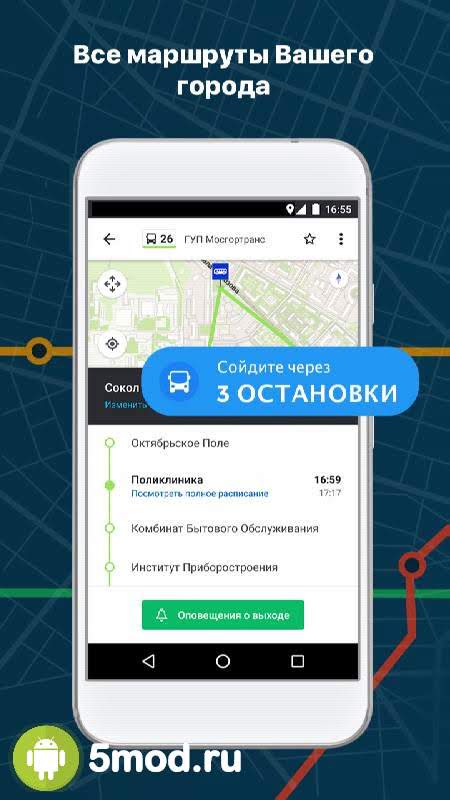 Moovit Транспортное Приложение – полезное приложение, которое позволяет узнавать в режиме реального времени, какое транспортное средство и когда, приезжает на нужную вам остановку.