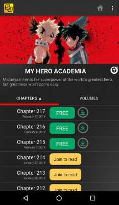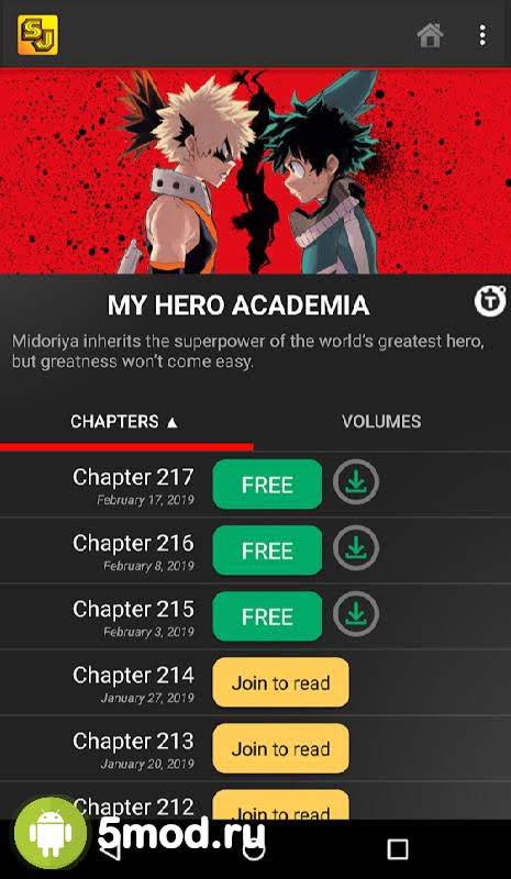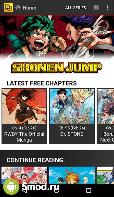 Shonen Jump Manga & Comics - отличная программа, что обязательно понравится любому поклоннику манги. Здесь они найдут постоянно и регулярно обновляемый ассортимент. Как уже классических произведений, так и постепенно выходящих глав ещё не завершённых проектов. Высокая скорость появление новинок, удобное отслеживание за предстоящими релизами, коллекционирование в собственной подборке любых творений, синхронизация между устройствами, а так же многое другое и делает данное приложение выгодным приобретением для всех кто любит читать и погружаться в увлекательные сюжетные линии.