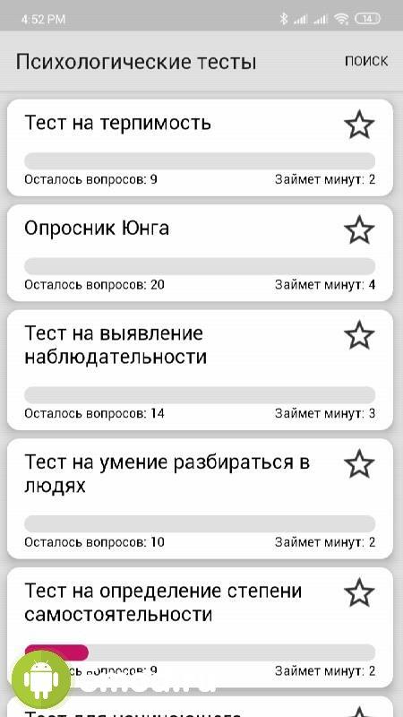 40+ Psychological Tests - сборник психологических тестов, что позволит получить весьма полный ответ на свои вопросы без посещения специалистов. Обширнейший спектр проектов позволяет составить разностороннюю картину, выявить какие-либо проблемы, первично оценить душевное и эмоциональное состояние и просто узнать о себе много нового и познавательного. Но всё же в случае хоть каких-либо сомнений и тревог, пользователям лучше всего будет обратиться к дипломированным врачам. А данную программу рассматривать больше, как развлекательное приложение, чем способ решения возникших жизненных трудностей.