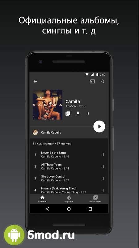 YouTube Music - ещё одно приложение от известной компании, что предлагает пользователям сделать прослушивание музыки или же просмотр клипов в онлайн режиме намного более комфортным и не требующим каких-либо особых действий по настройке и так далее. Есть и режим сохранения понравившихся композиций на устройство, для последующего включения в оффлайн обстановке. Ну а удобный поиск, различные приятные особенности для меломанов, создание отдельных подборок, постепенное заполнение собственной библиотеки, отсутствие рекламы и многие другие качества понравятся всем кто ищет что-то подобное в данной категории.