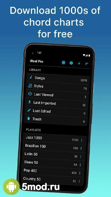 iReal Pro - Music Book & Backing Tracks - крайне полезное и очень функциональное приложение, что заменит для начинающих музыкантов работу целого оркестра. Что позволяет не только тренироваться при сопровождении, так и просто избавится от тревоги и боязни участия в процессах таких масштабов. Но и кроме этого программа предоставляет целый список дополнительных возможностей. Которые можно настраивать и определять их работу в зависимости от собственных потребностей и задач. Есть и экспорт. Собранных баз данных, книг аккордов, самостоятельно записанной музыки и всего прочего, что можно использовать и отдельно от этого проекта.