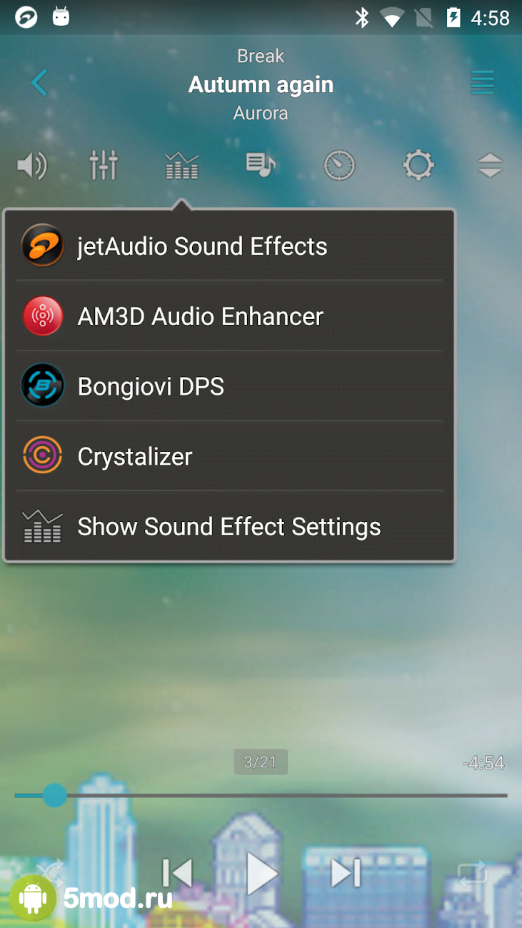 jetAudio HD Music Player Plus - крутой и стильный аудиоплеер обладающий 10 или 20 полосным эквалайзером. Всё зависит от выбора и предпочтений меломана желающего получить идеальный звук за счёт точной ручной регуляции. Конечно же стоит отметить, что jetAudio воспроизводит практически все форматы аудио. Так что пользователи фактически полностью избавлены от необходимости изыскивать другие варианты для прослушивания редких форматов. Ну а наличие виджета с возможностью точной настройки его параметров, а так же многие другие качества программы, так же добавляет положительных впечатлений.