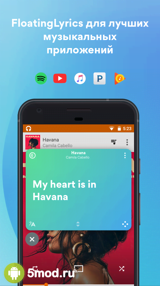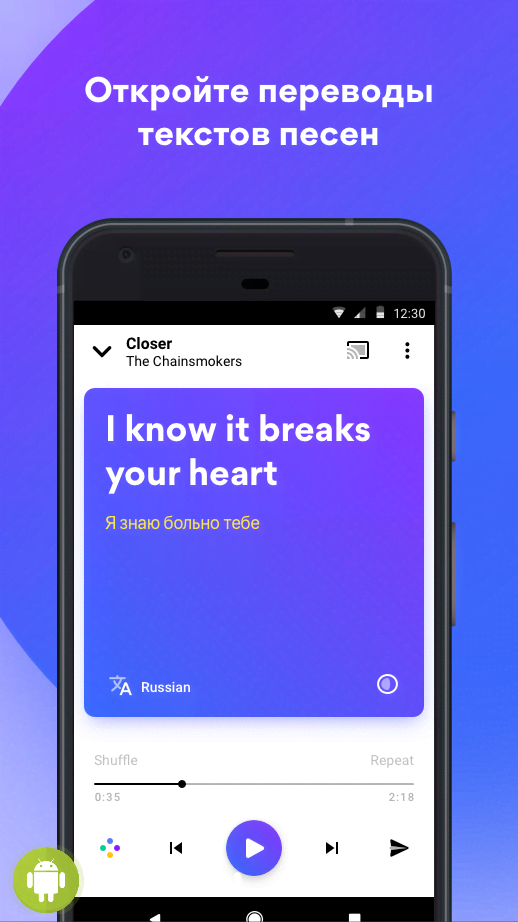 Musixmatch - Lyrics for your music - отличное приложение для всех меломанов, что любят узнавать тексты песен, анализировать, а так же понимать смысл скрытый в строчках. По факту это клиент для отдельного доступа к огромной базе данных используемых при просмотре на Youtube, прослушивании на Spotify и прочих популярных развлекательных ресурсах. Достаточно одного нажатия, чтобы получить желаемый результат в оригинале или сразу же в переведённом состоянии. Закладки, обмен полученной информацией и многие другие функции и возможности безусловно порадуют всех кто интересуется подобными вещами.