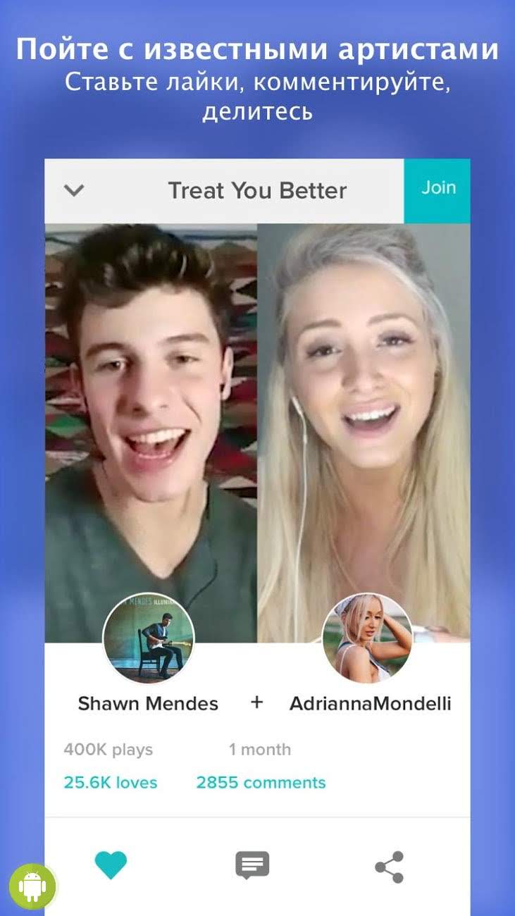 Smule - The #1 Singing App - отличное музыкальное приложение, что так же можно отнести к социальной сети по интересам. Здесь пользователи смогут наслаждаться пением самых различных песен. И при этом действовать как в одиночку, так и в режиме группового исполнения. Список из колоссального количества треков, система эффектов, как звуковых, так и визуальных (человек так же может записывать видео своего триумфа), высокое качество записи, редактирование, подсказки при проигрывании композиции, а так же многое другое оставляет только самые положительные впечатления.