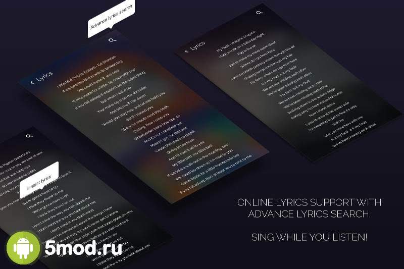 Musicana Music Player - ещё один классный аудиоплеер, что предназначен для оффлайн прослушивания музыки с устройства. 5-полосный эквалайзер, удобное управление и контроль (система жестов, программируемые действия и так далее), а так же огромное разнообразие настроек визуальной составляющей понравится всем кто любит качественные продукты. Так же в проекте есть и одна очень интересная функция - это распознавание незнакомых композиций. Быстрая и точная идентификация в купе с остальными свойствами обеспечивает отличные впечатления от работы с Musicana Music Player. Пользователям, что ищут оптимальный вариант, обязательно стоит обратить внимание на это приложение.