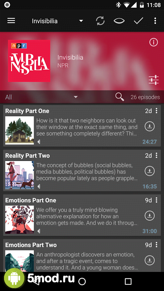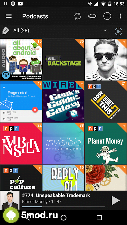 Podcast Addict - одно из лучших, и как следствие, популярных, приложений для прослушивания подкастов, радиостанций, аудиокниг, новостных каналов, а так же просмотра видеосервисов. Программа предлагает очень удобное управление всем своим богатым функционалом, создание плейлистов с различными настройками, воспроизведение с разной скоростью, автоматическим режимом скачивания и установки в очередь новинок с указанных каналов, а так же автономная работа и прочие возможности. Безусловно поклонники подобного времяпрепровождения останутся довольны Podcast Addict.