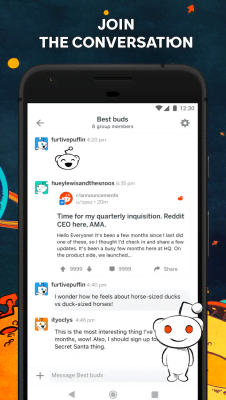 Reddit: Social News, Trending Memes & Funny Videos - программа-клиент, что даёт доступ к невероятно популярному социальному новостному сайту где пользователи сами формируют ленту. Полная открытость и свобода выражения (конечно же в разумных пределах не выходящих за рамки уголовных и моральных законов), а так же удобное управление всем доступным функционалом и сделали площадку настолько востребованной у современных людей предпочитающих интернет. Ну а данное приложение делает взаимодействием с ней ещё более продуктивным и оперативным. Фанаты Reddit-а просто обязаны им пользоваться.