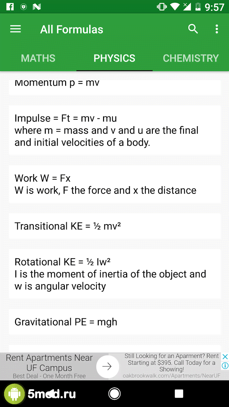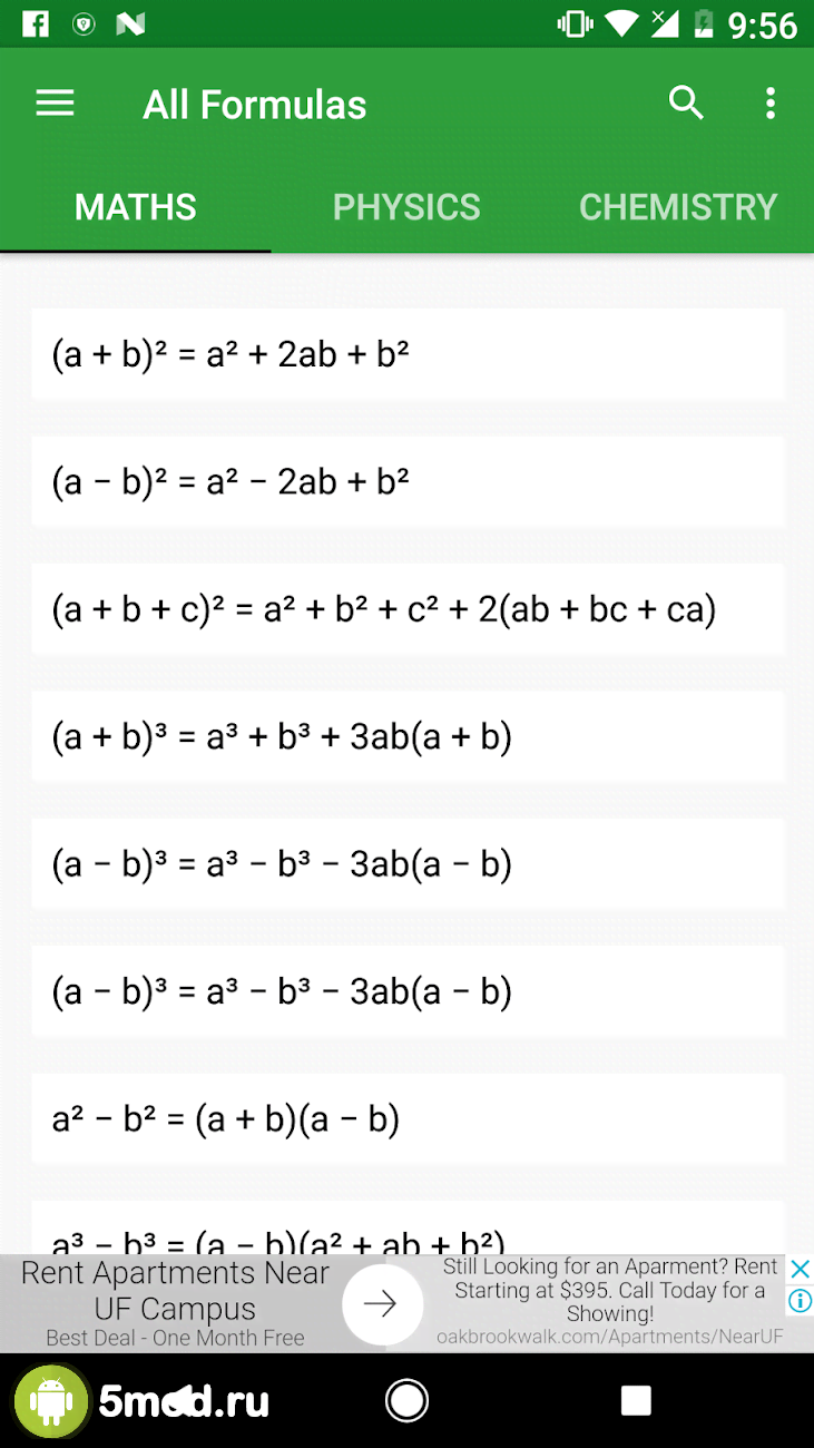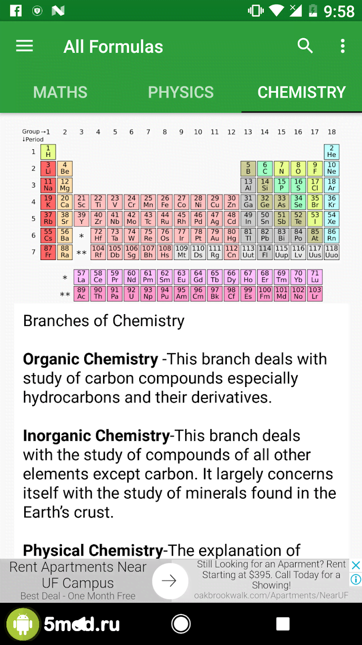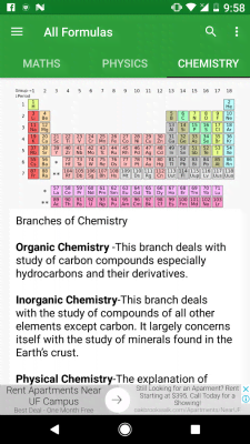 All Formulas - ещё один отличный проект в категории для тех кто получает образование любой направленности и степени сложности. В любом случае им пригодиться набор существующих функций на данный момент. От самых простых из средней школы, до ужасных, даже на внешний вид, из университетов и прочих мест где они понадобятся пользователям. Математика, химия, физика и смежные с ними направления науки, а так же такие полезные вещи, как периодическая таблица элементов и многое другое доступно в оффлайн режиме. Простое и понятное оформление не создаст каких-либо трудностей для получения важных данных.