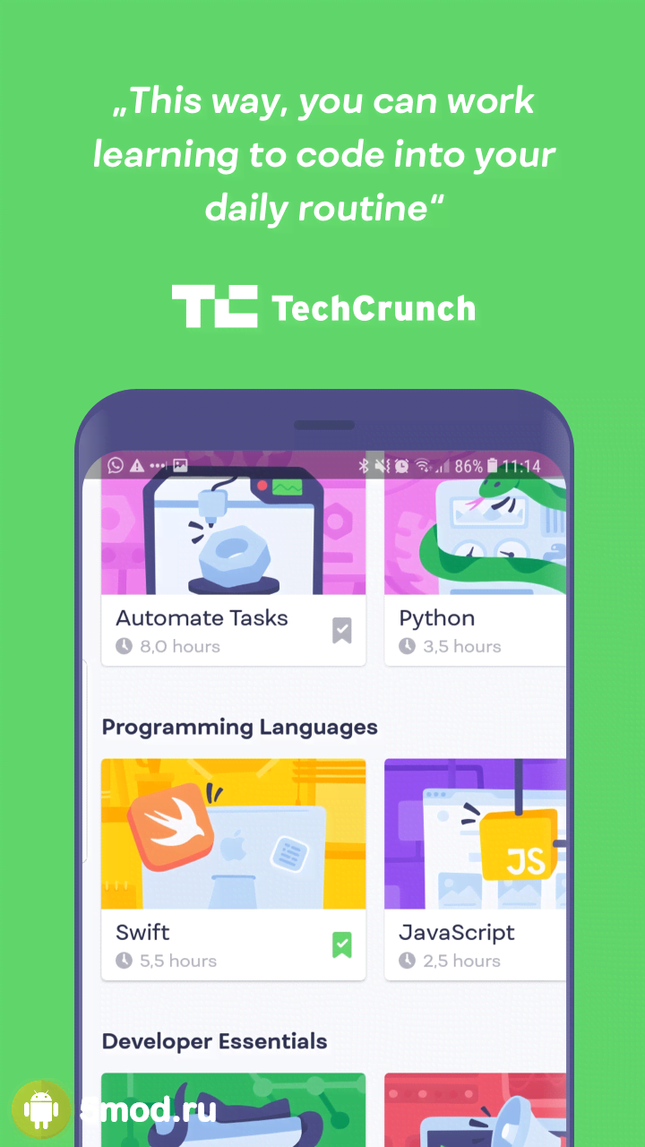 Утилита позволяет автоматизировать однотипные дела по дому и быстрее выполнять второстепенные задачи, продвигаясь вверх по карьерной лестнице и заодно изучая программирование. Интересные и полезные курсы, тесты, различные задания и множество понятной и доступной информации. Каждый курс уникален и отвечает за выполнение определенных задач. Самое главное, что подбираются они индивидуально, в зависимости от того, чему хотят научиться пользователи.