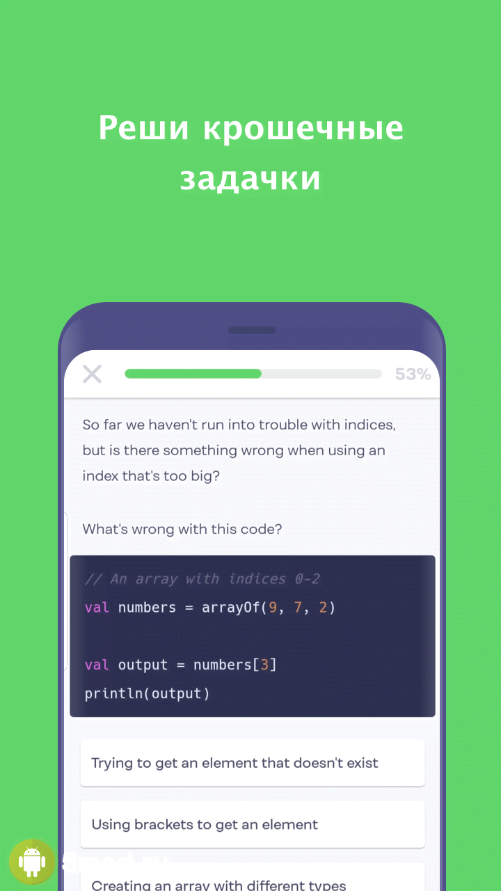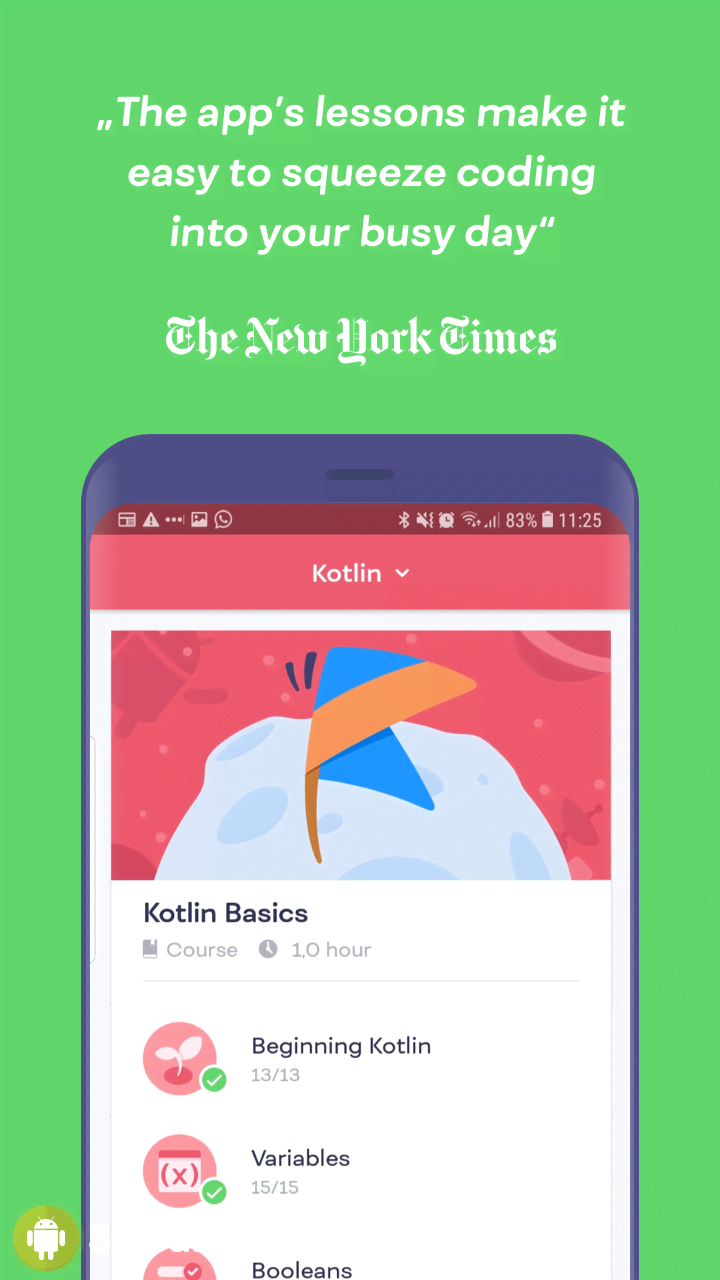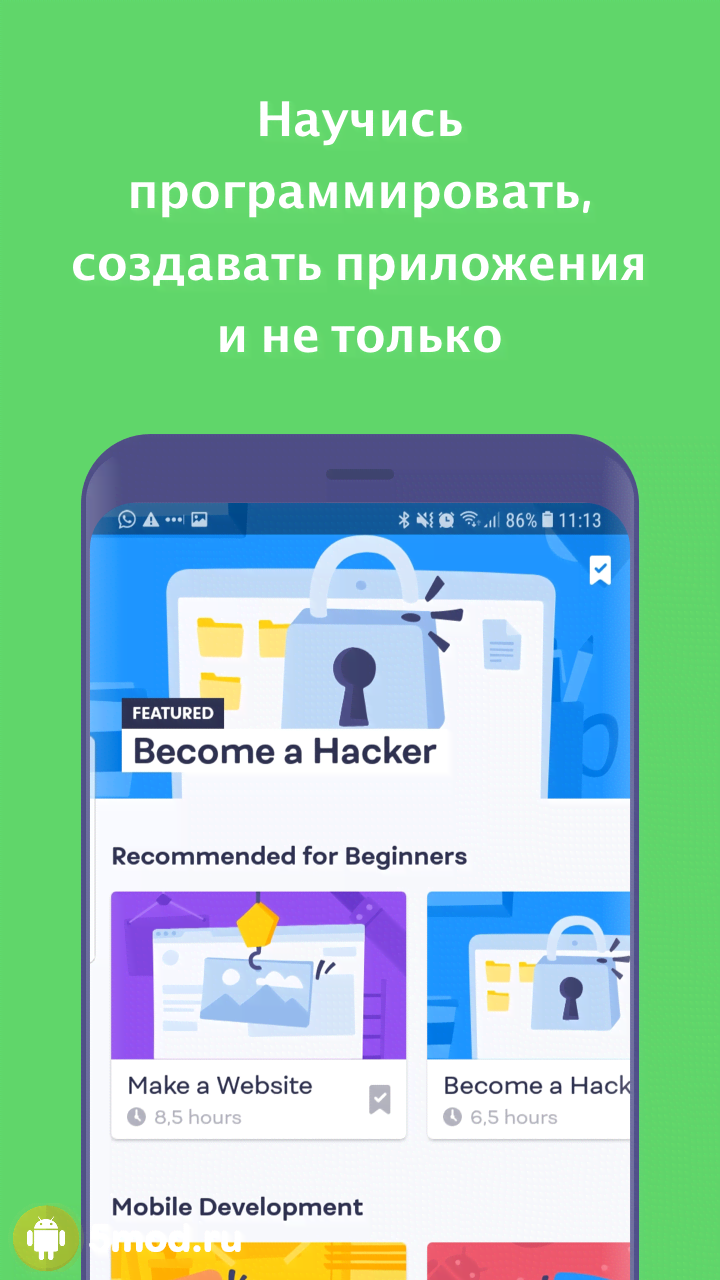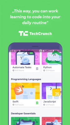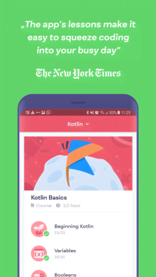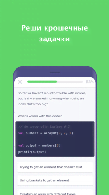 Попробуйте уделять приложению хотя бы по 5 минут в день и в скором времени результаты не заставят себя ждать. Вы сможете решать интересные упражнения, создавать крутые проекты и в конце обучения получите полноценный сертификат со своим портфолио.