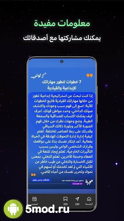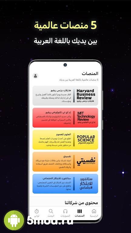 Majarra: 5 platforms in Arabic - образовательный проект предназначенный в первую очередь для исламского мира. Знание арабского языка является обязательным для комфортного применения ПО. Пользователи получают доступ к платформе на которой они смогут найти знания, полезные факты и практический опыт в самых разных областях науки и повседневной жизни. Читатели смогут читать статьи из именитых журналов и образовательных учреждений, регулярно получать обновления и быть в курсе всех передовых открытий и достижений в самых различных сферах. Любознательным и расширяющим кругозор обязательно стоит обратить внимание.